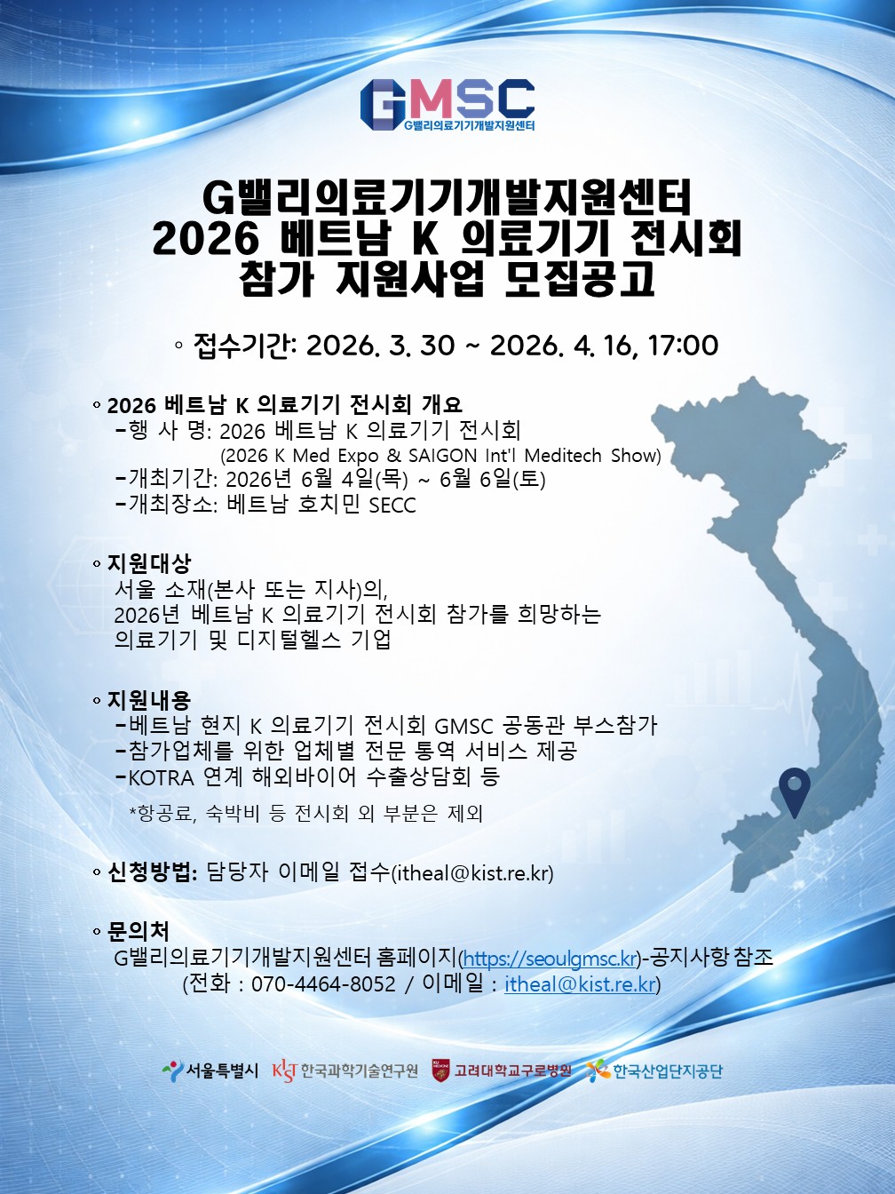 G밸리의료기기개발지원센터 2026 베트남 k 의료기기 전시회 참가 지원사업 모집공고 포스터.pdf (576.9 KB)